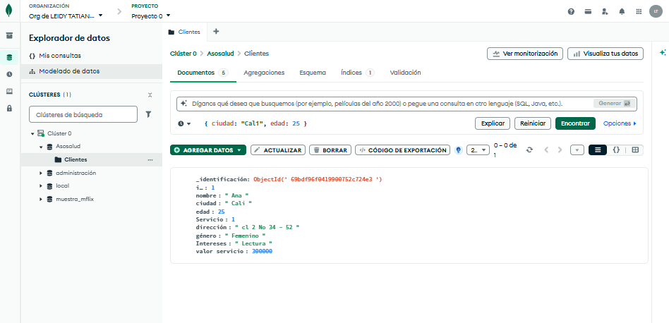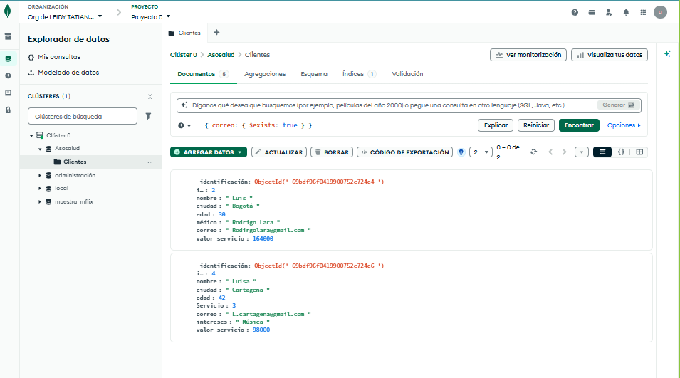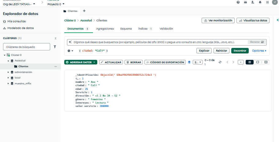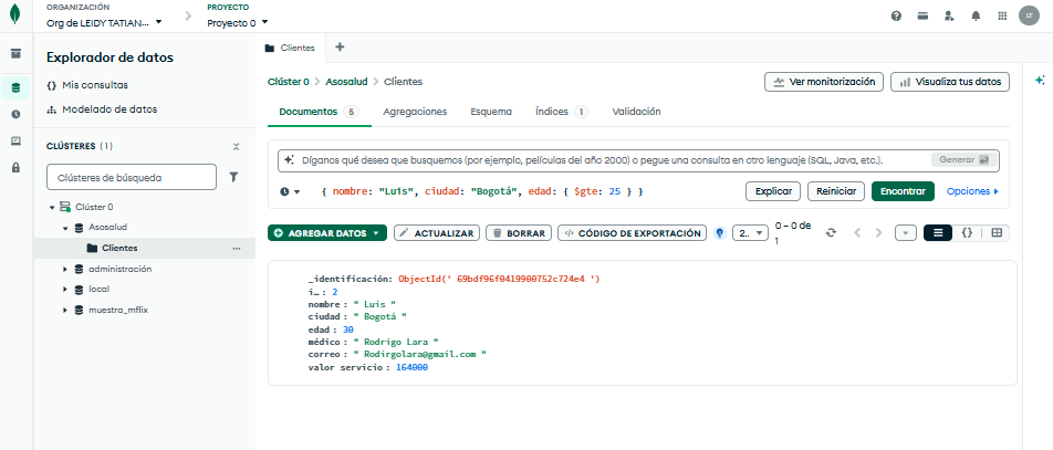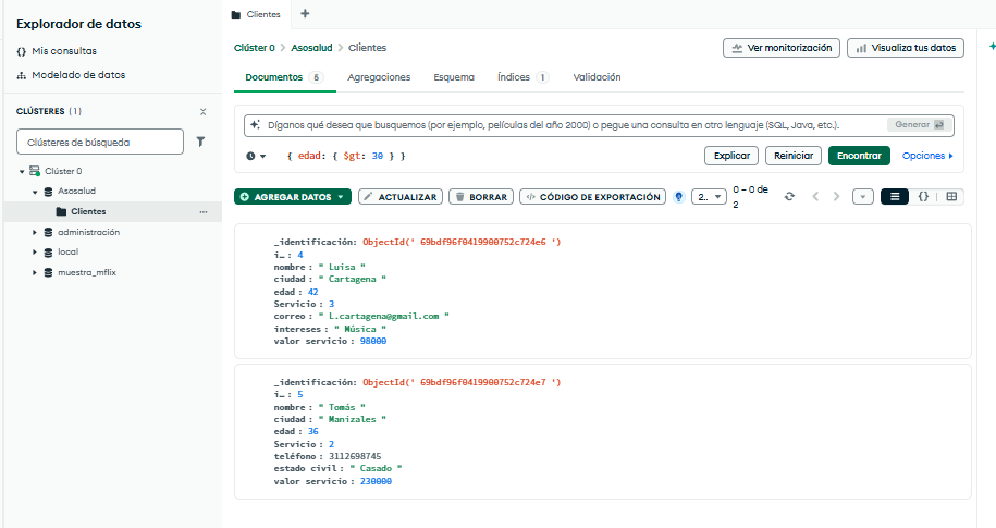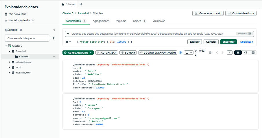 La práctica realizada permitió identificar cómo crear colecciones, insertar documentos y ejecutar consultas básicas y combinadas, evidenciando que MongoDB es una alternativa eficiente según el tipo de información que se requiera administrar.